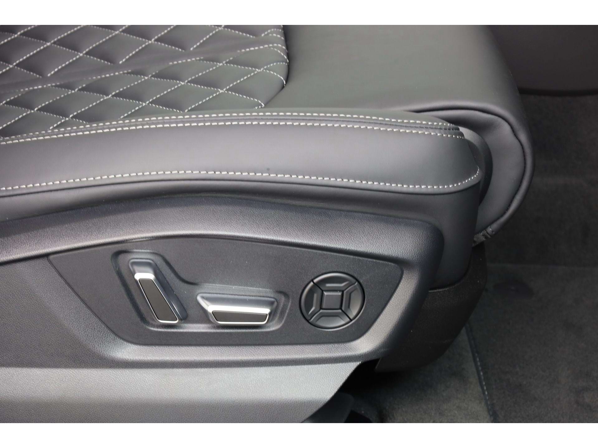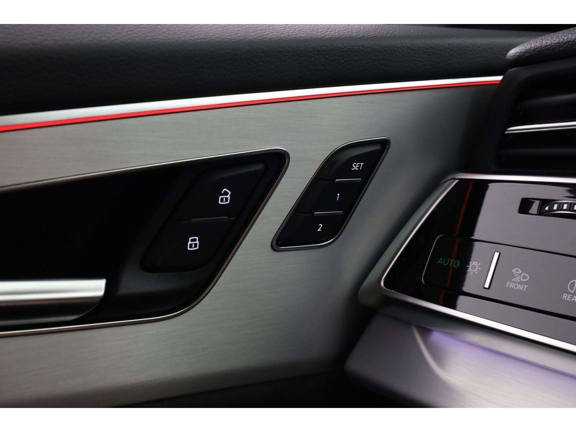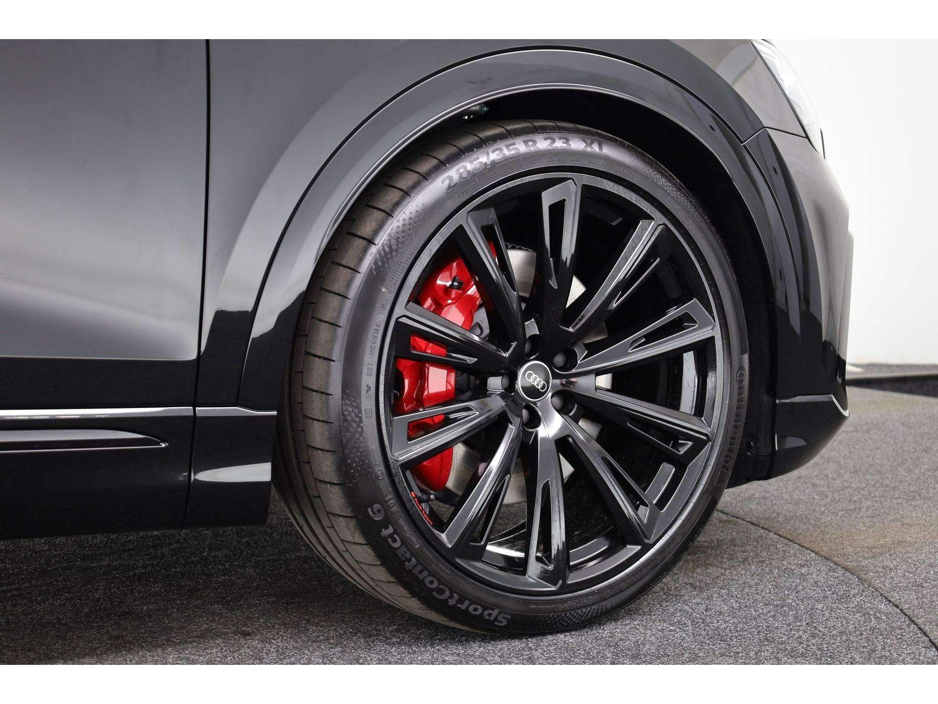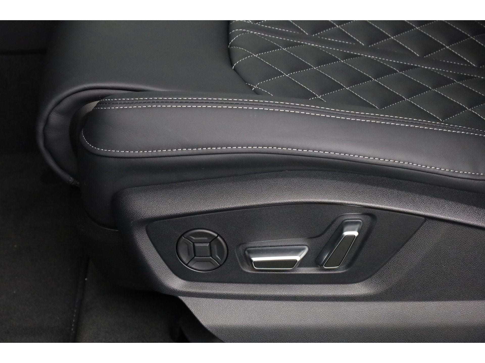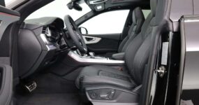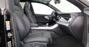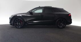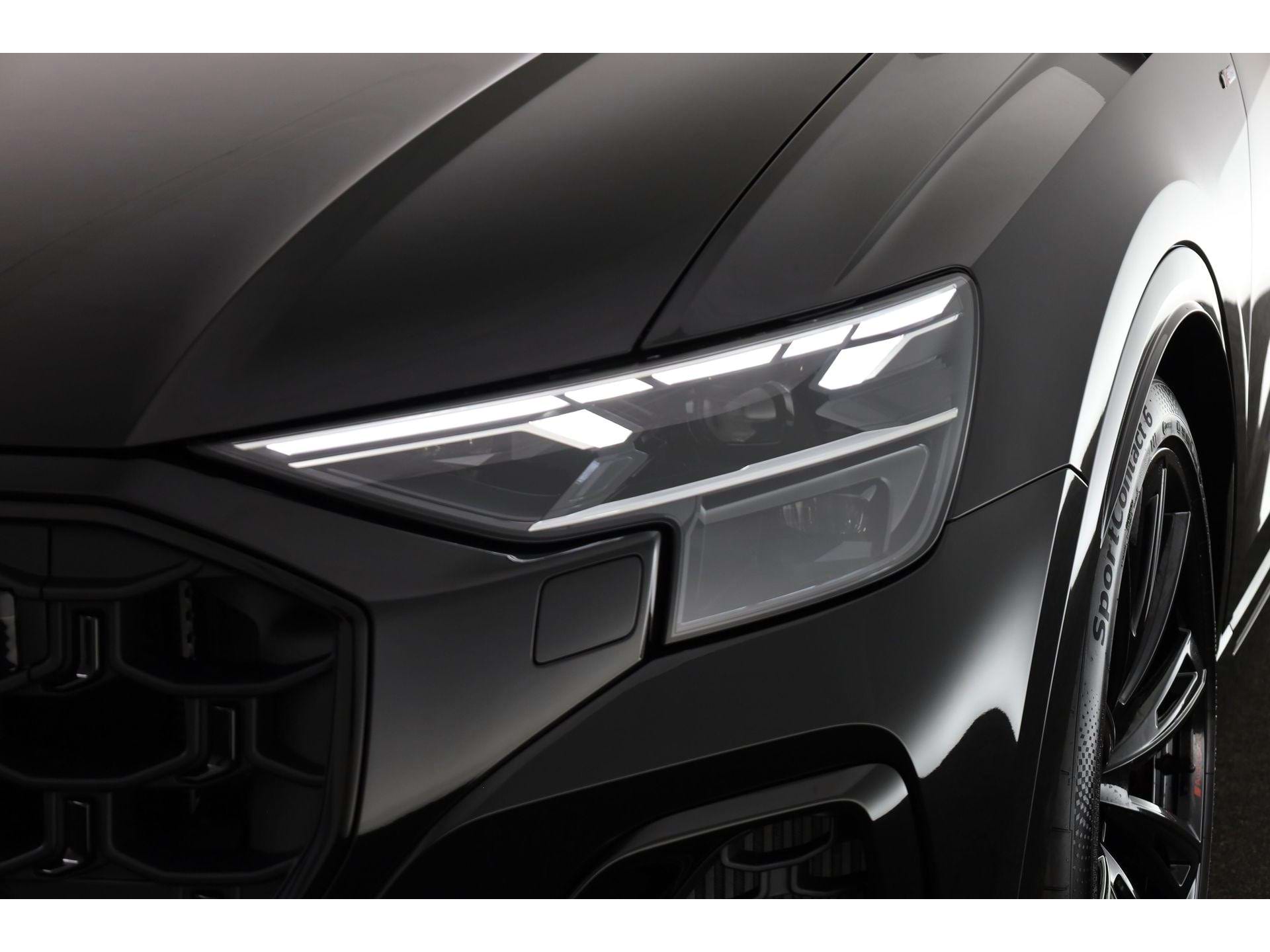 De Q8 is geen auto voor mensen die graag anoniem door het leven gaan. Aan de buitenzijde vallen de enorme 23-inch Audi Sport lichtmetalen velgen direct op, zeker in combinatie met het Optiekpakket zwart plus waardoor alle glimmende delen zijn vervangen door een zwarte afwerking. De Matrix-led koplampen snijden ’s nachts door het duister zonder je tegenliggers te verblinden, terwijl het glazen panoramadak overdag de cockpit van extra daglicht voorziet.