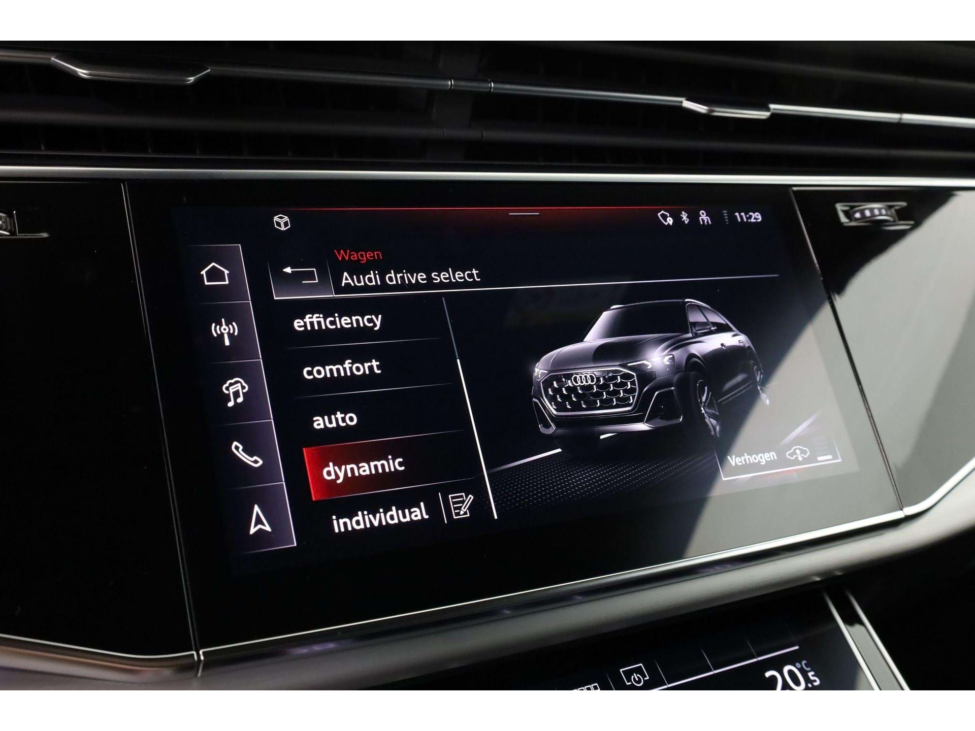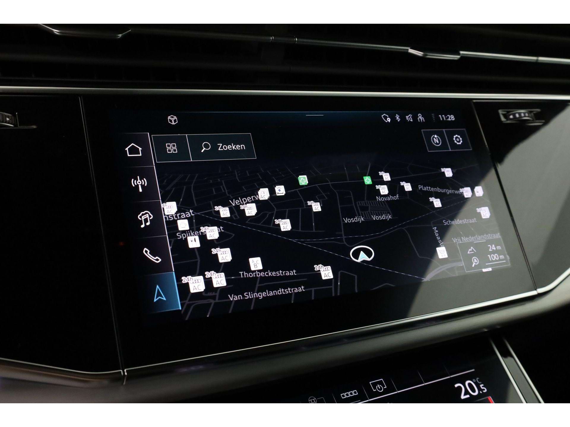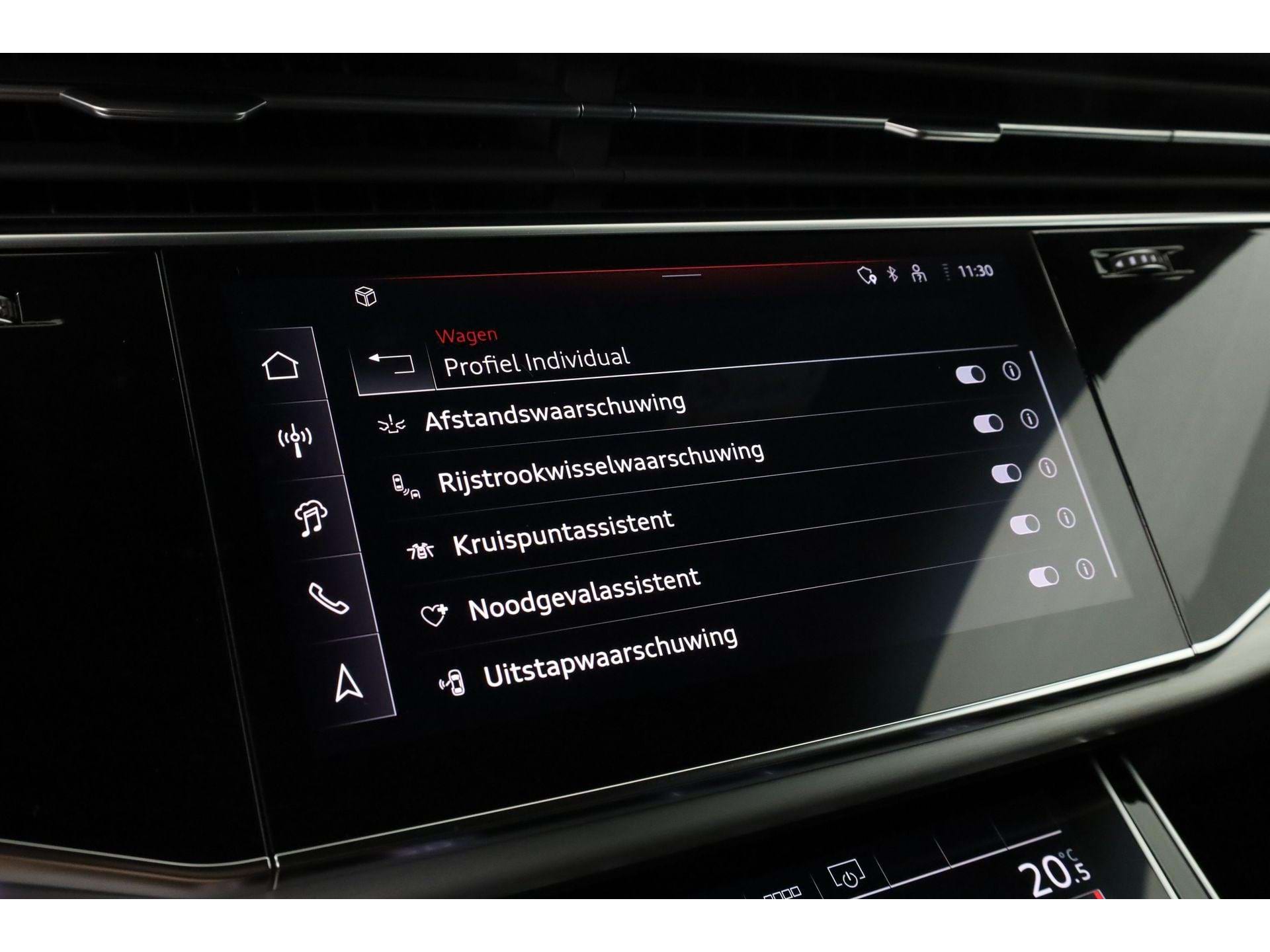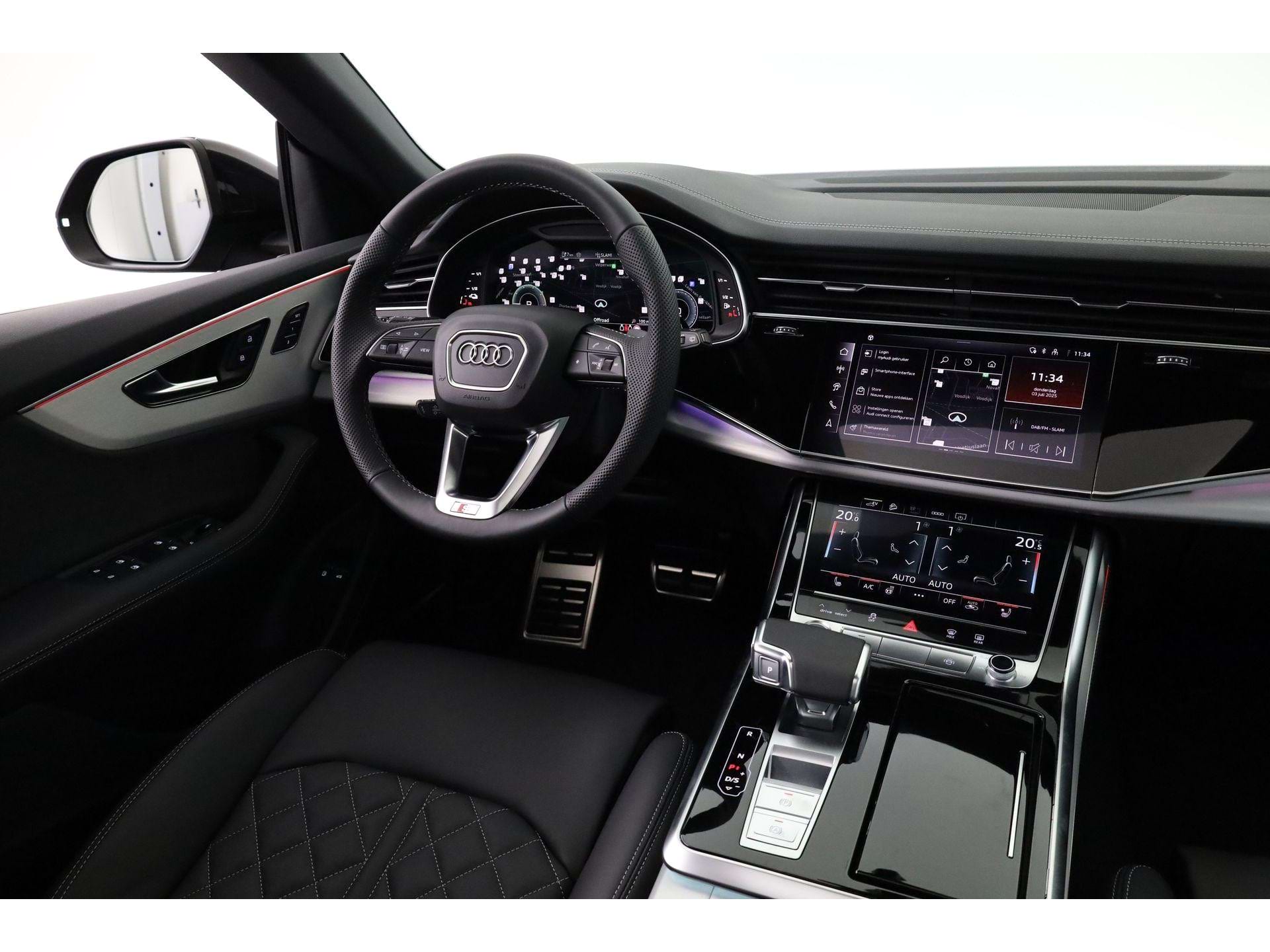 Wat deze Q8 echt afmaakt, zijn de details: stoelverwarming voor én achter, het Tour-pakket dat de auto nagenoeg zelfstandig door het verkeer loodst en de Audi Virtual Cockpit die alle navigatie-info haarscherp projecteert. Het volledig digitale instrumentenpaneel en de draadloze smartphone-integratie zorgen dat je altijd verbonden bent.