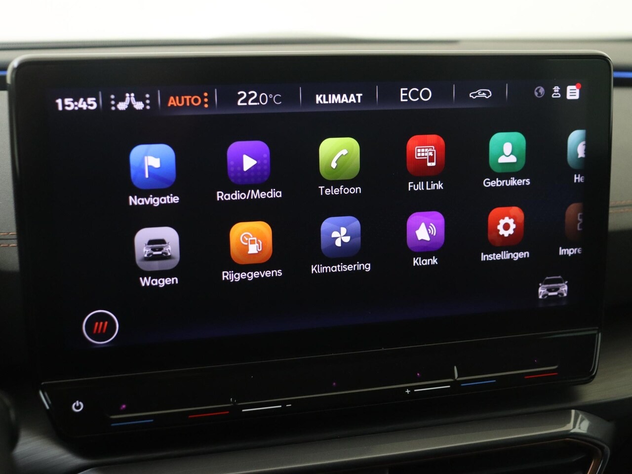 Binnenin wordt de leaserijder getrakteerd op een interieur dat de term ‘zakelijk’ net wat spannender invult. De slimme LED-sfeerverlichting loopt door over de gehele breedte van het dashboard en fungeert ook als dodehoeksensor – een zeldzaam moment waarop design en veiligheid daadwerkelijk een nuttig huwelijk vormen. Met stoel- en stuurwielverwarming is de ochtendfile in januari ineens een stuk draaglijker, terwijl de 3-zone airco het klimaat aan boord stabiel houdt.