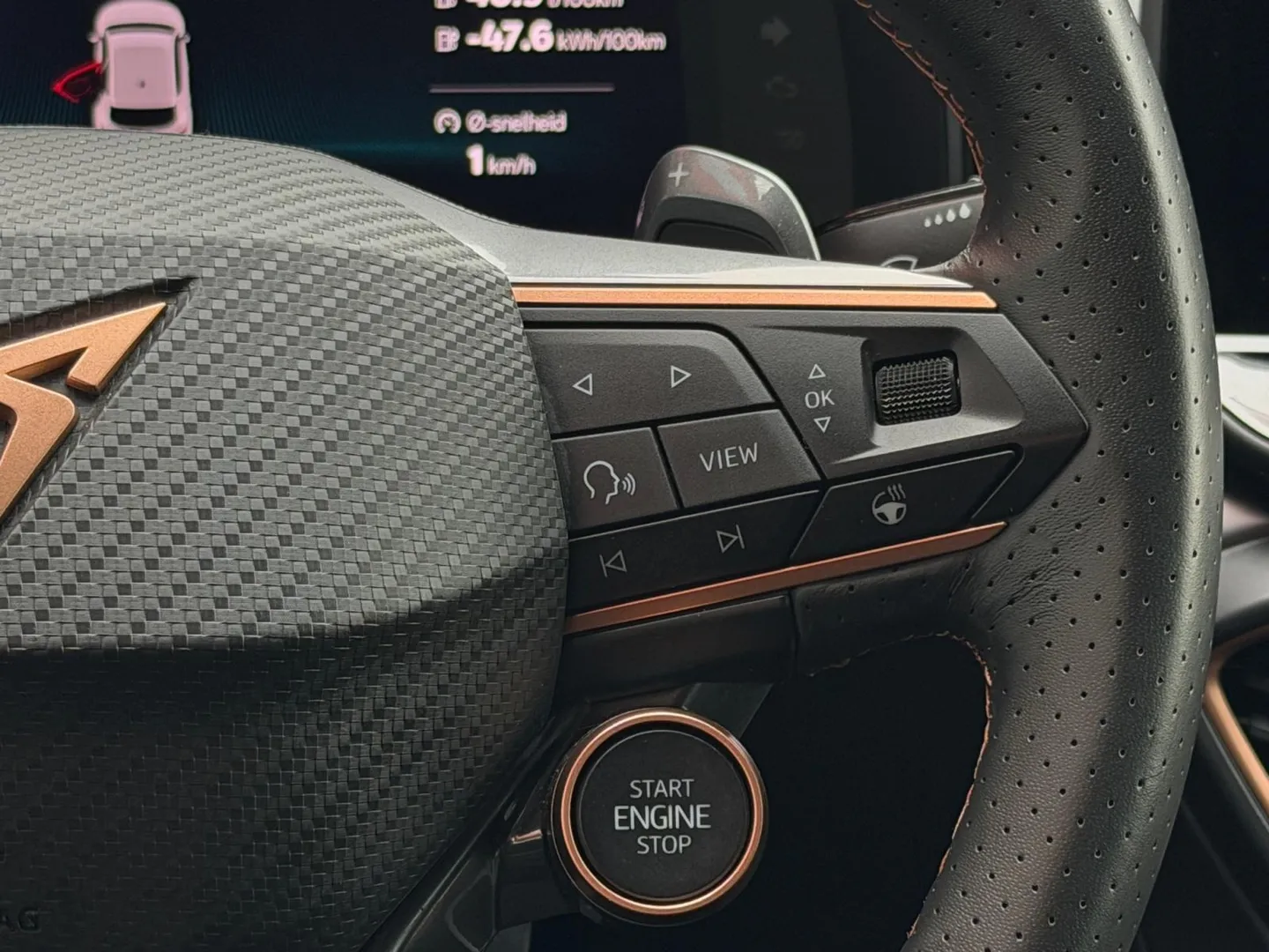 Binnenin domineert het 12,9-inch touchscreen met infotainmentsysteem en navigatie het dashboard, aangevuld met een volledig digitaal instrumentenpaneel. De verwarmde sportstoelen bieden goede zijsteun, terwijft het verwarmde lederen sportstuur alle bedieningselementen binnen handbereik houdt. Voor zakelijke gebruikers zijn de draadloze telefoonlader en smartphone entry praktische pluspunten. De sfeerverlichting en aluminium interieurafwerking tillen het premium gevoel naar een hoger niveau.