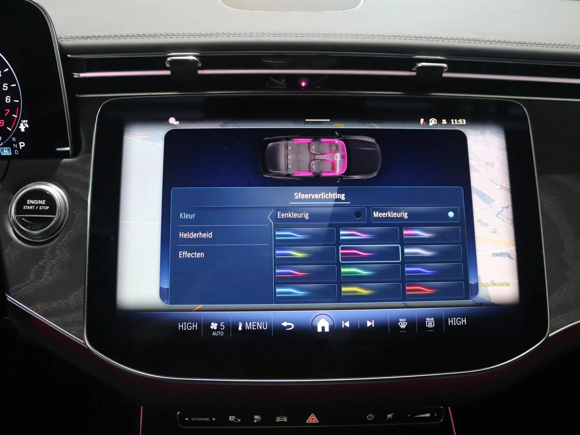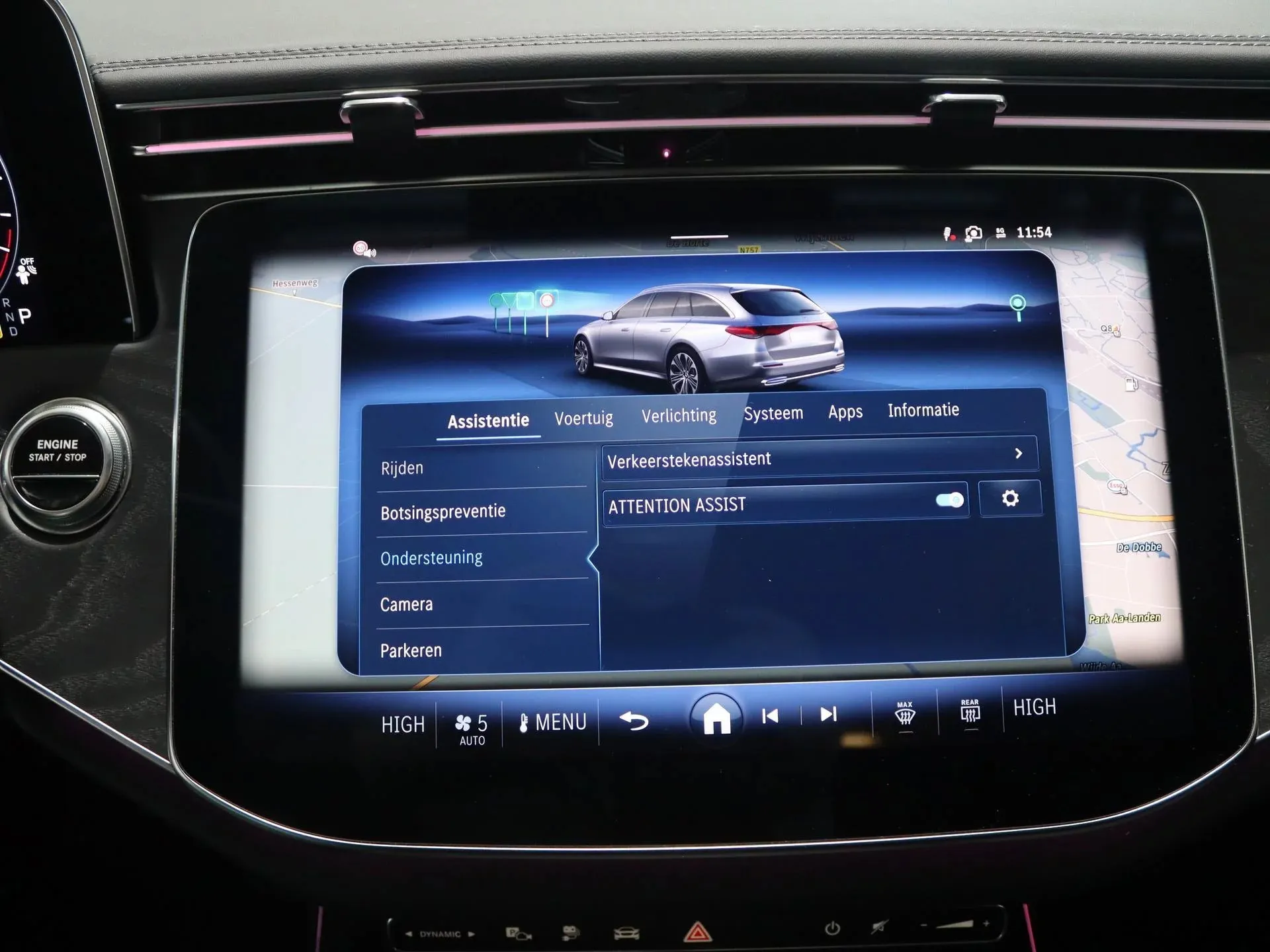 Binnenin is de ‘E’ een typische Mercedes: de afwerking is op topniveau. Je zit op sportstoelen bekleed met Artico kunstleder en microvezel, wat stroever en sportiever zit dan glad leer. Het MBUX-systeem is dominant aanwezig; twee haarscherpe schermen die naadloos samenwerken met Apple CarPlay en Android Auto. Voor de zakelijke rijder die zijn auto als tweede kantoor gebruikt, is de geluidsisolatie fenomenaal—het is bijna eng stil. Let wel: door het accupakket van de plug-in hybride lever je iets in op de bagageruimte onder de laadvloer, maar met 460 liter boven de vloer blijft de E-Klasse een pakezel van formaat.
