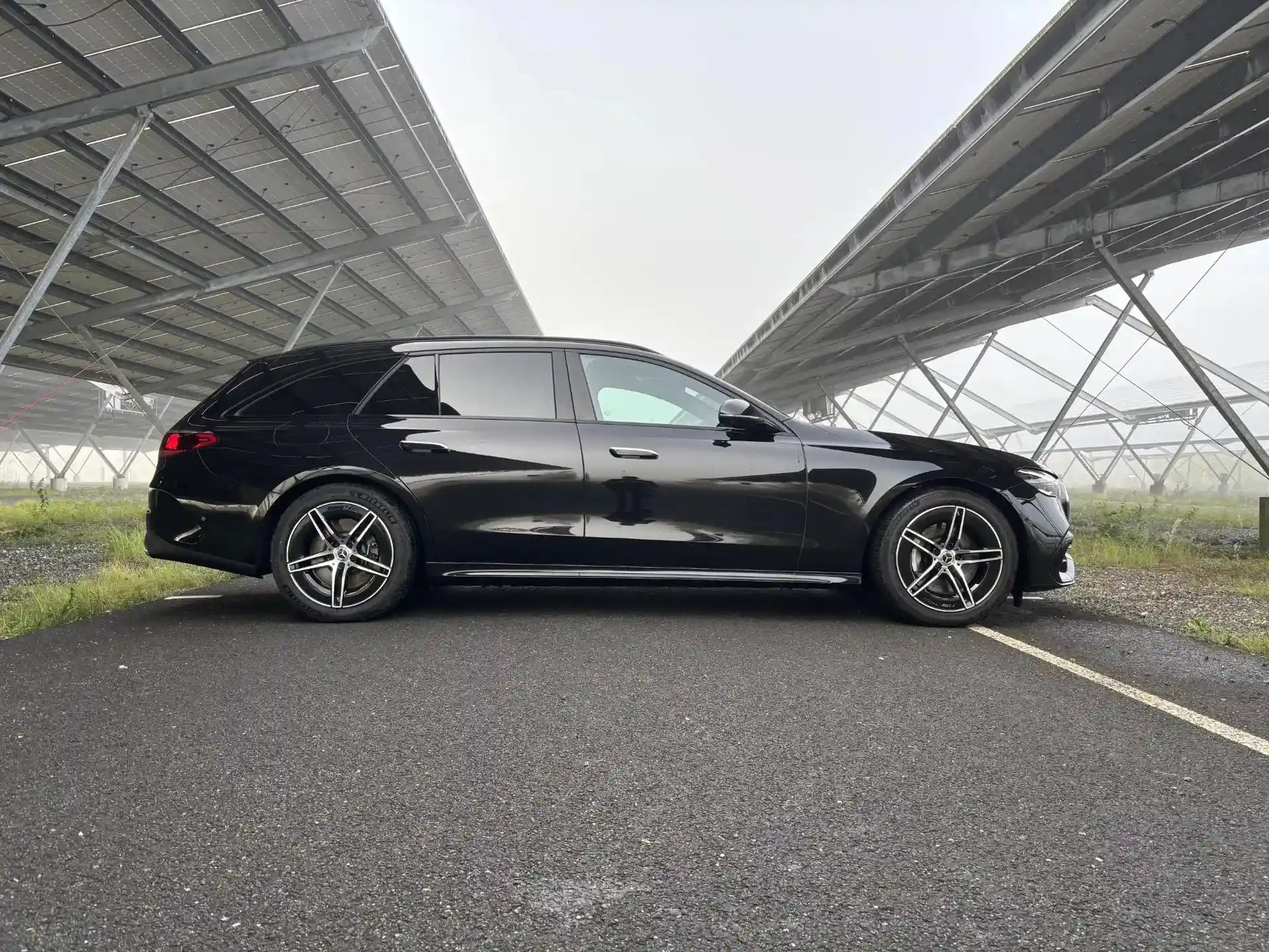 De E-Klasse Estate is traditioneel de benchmark in zijn segment, en deze AMG Line doet daar nog een schepje bovenop. Aan de buitenzijde zorgen het AMG-exterieurpakket, de 19-inch lichtmetalen velgen, het panoramadak, de hoogglans zwarte details en het privacy-glass voor een chique en tegelijkertijd sportieve uitstraling. De E300 e heeft een elektrisch wegklapbare trekhaak waarmee de Duitser maximaal 2.100 kilogram mag trekken. Genoeg voor een forse Tabbert-caravan of een uit de kluiten gewassen paardentrailer.