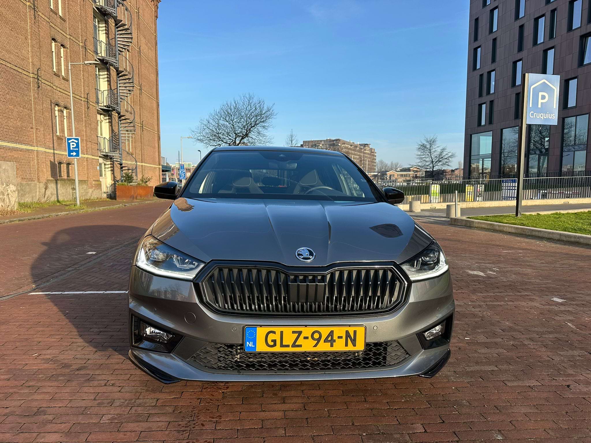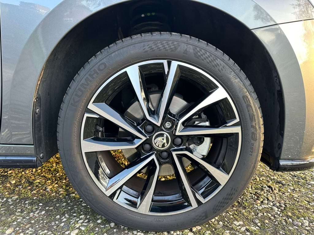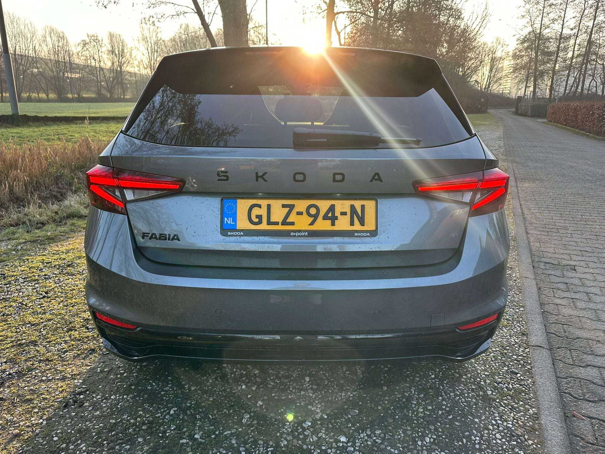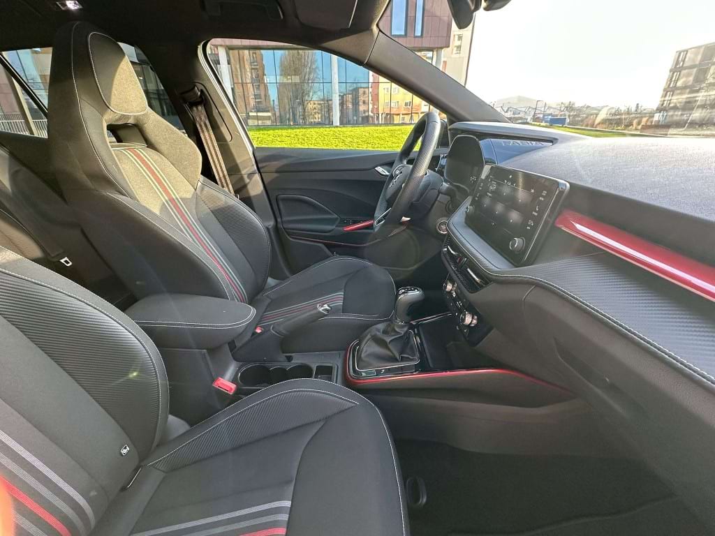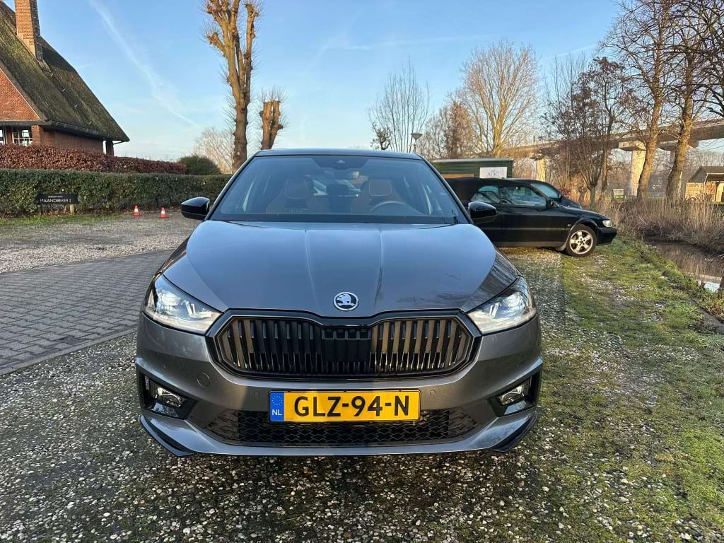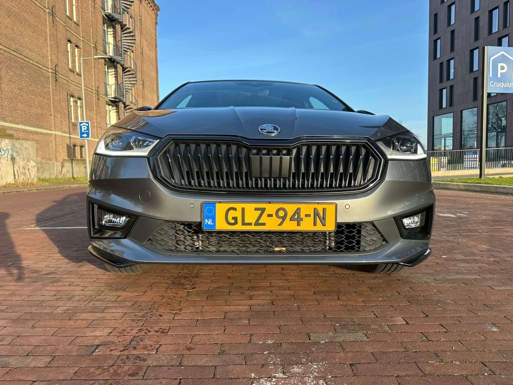 De Monte Carlo-uitvoering van de Skoda Fabia is niet voor de grijze muis die enkel van A naar B wil. Aan de buitenzijde springt de Graphite Grey metallic lak direct in het oog, scherp gecontrasteerd door het ‘Colour Concept Zwart’. Dit betekent dat de A-stijlen en het dak in Black Magic zijn uitgevoerd, wat samen met de 17-inch zwarte Procyon Aero-velgen zorgt voor een gedurfde, bijna agressieve look. Het optionele panoramadak trekt het daglicht naar binnen, waardoor de compacte Fabia binnenin verrassend ruimtelijk oogt.