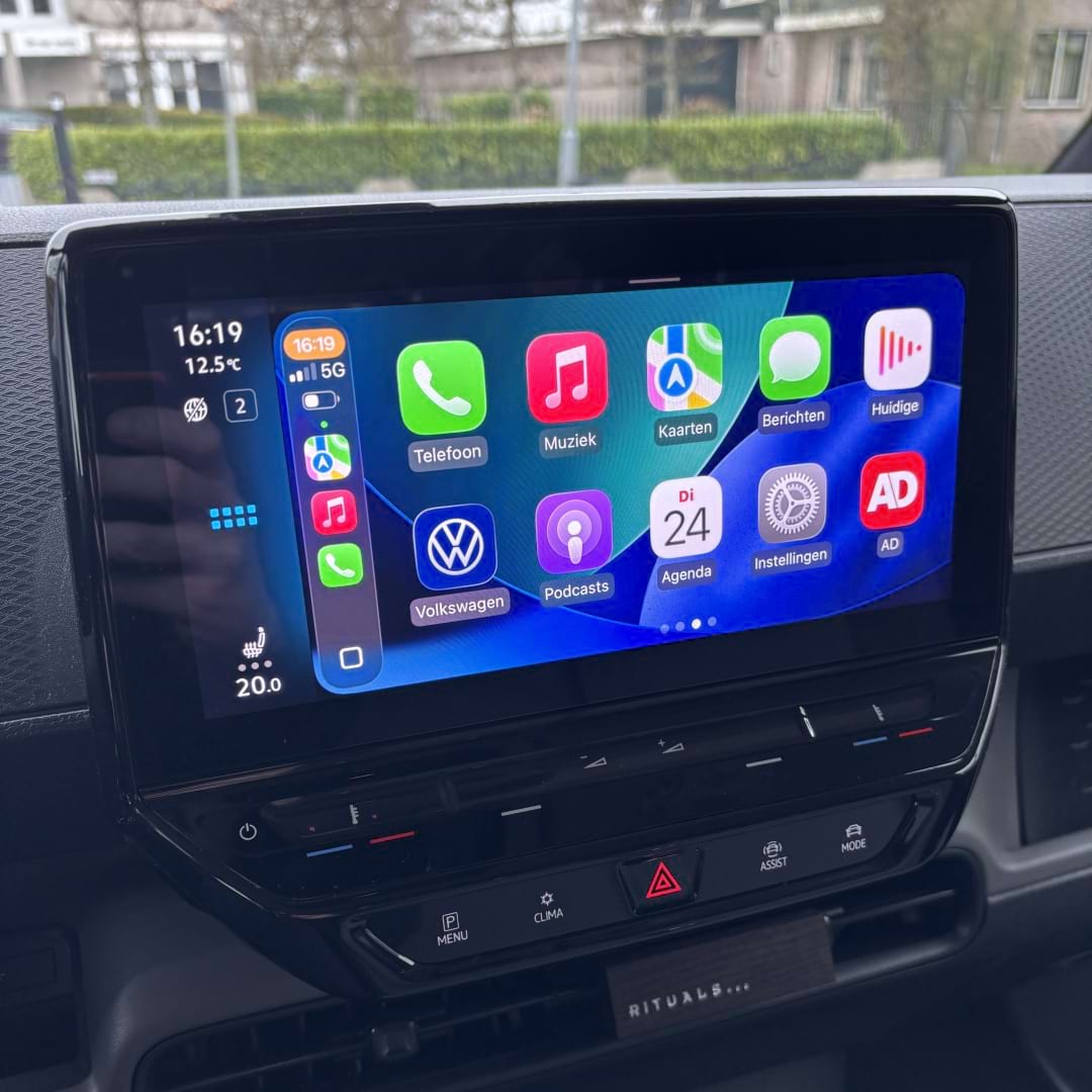 Deze ID. Buzz levert 204 pk en een direct koppel van 310 Nm. Dat betekent dat je bij het stoplicht menig leaserijder in een Tesla verrast. In 10,2 seconden zit je op de 100 km/u, wat voor een bus van dit formaat uitzonderlijk vlot is. De tussenacceleratie van 80 naar 120 km/u verloopt dankzij de elektrische aandrijflijn lineair en zonder onderbreking. De officiële WLTP-actieradius bedraagt 415 kilometer, in de dagelijkse praktijk is een gemiddelde van 360 tot 380 ‘echte’ kilometers realistisch. Snelladen doet hij met 170 kW, waardoor je in een half uur weer op 80% zit.