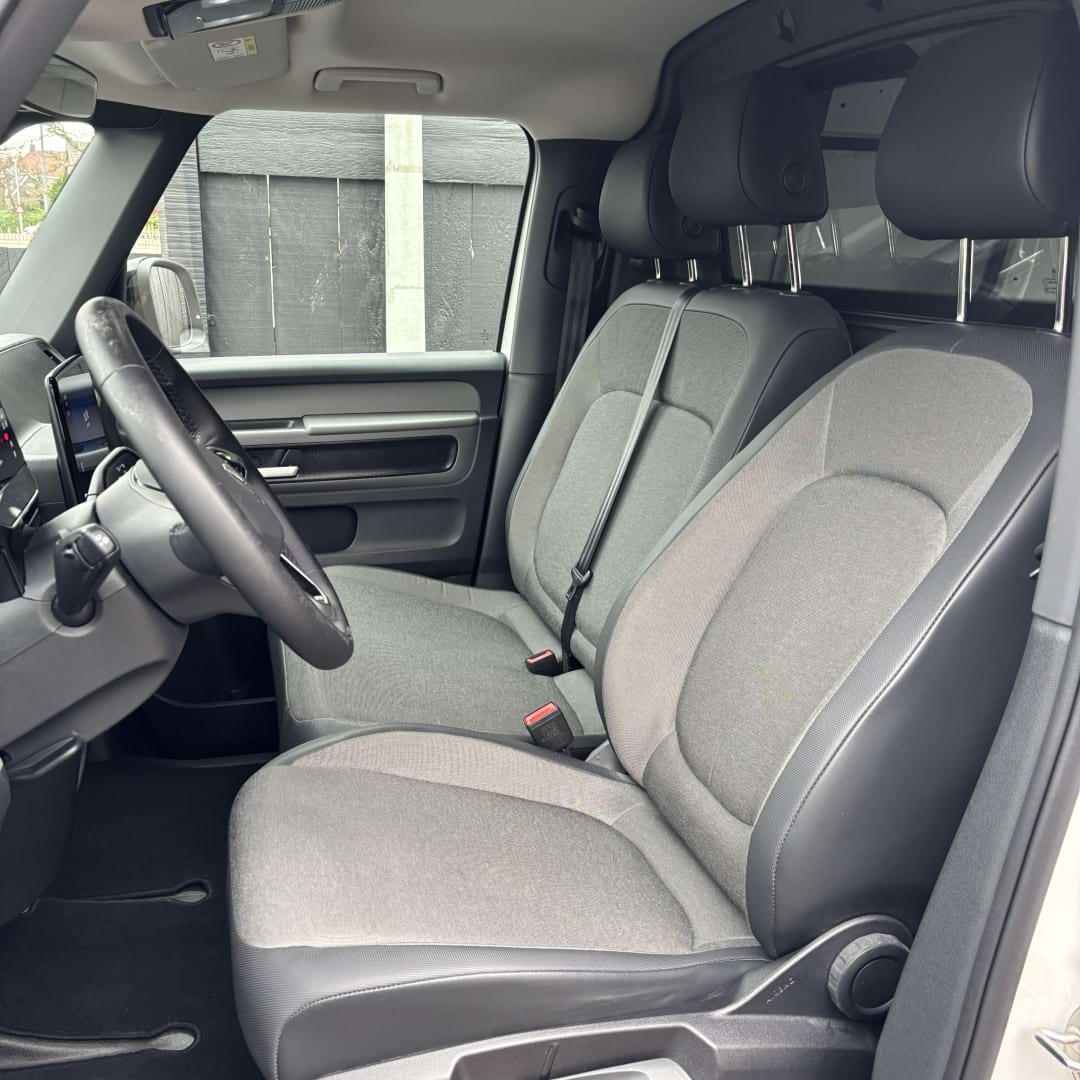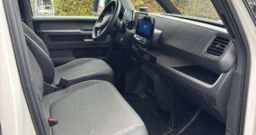 Ook het interieur is allesbehalve spartaans. Dankzij de ‘Robust’-stoelbekleding hoef je niet bij iedere koffievlek in paniek te raken; deze stof kan tegen een stootje. De hoge scheidingswand met vaste ruit zorgt ervoor dat de cabine snel op temperatuur is en dat je niet constant naar het rammelende gereedschap achterin hoeft te luisteren. Met het Assistancepakket Plus en het Multimedia Pakket is de werkplek moderner dan menig kantoor. Het multimediasysteem koppelt naadloos met je telefoon, zodat je onderweg probleemloos een podcast kunt luisteren.