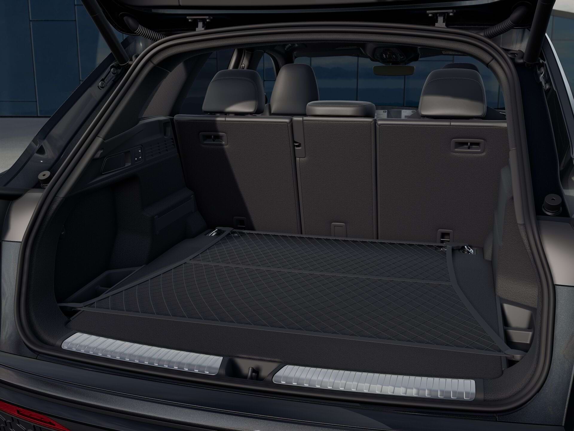 Bij de samenstelling van deze Audi Q5 S edition Competition is niet bezuinigd. Het exterieur in Mythoszwart metallic oogt sinister en zakelijk tegelijk, zeker in combinatie met de gigantische 21-inch Audi Sport-velgen en het donkere privacy-glass. Praktisch vernuft is er ook: de mechanisch wegklapbare trekhaak is ideaal voor wie in het weekend een boot of paardentrailer moet trekken.