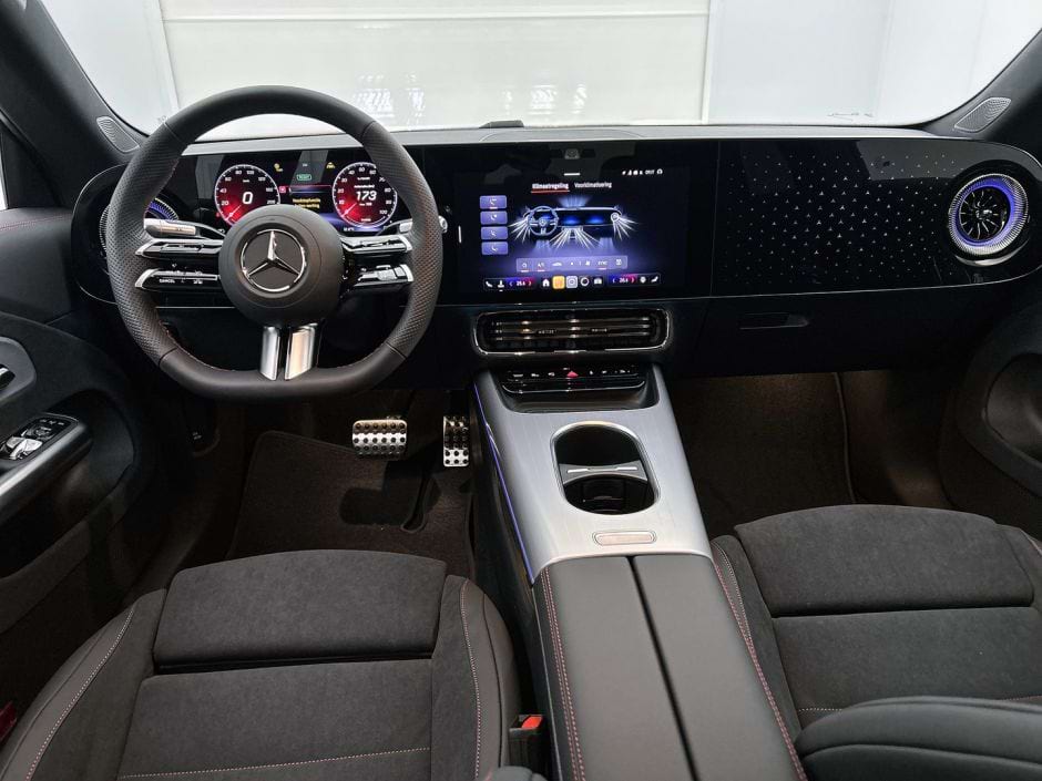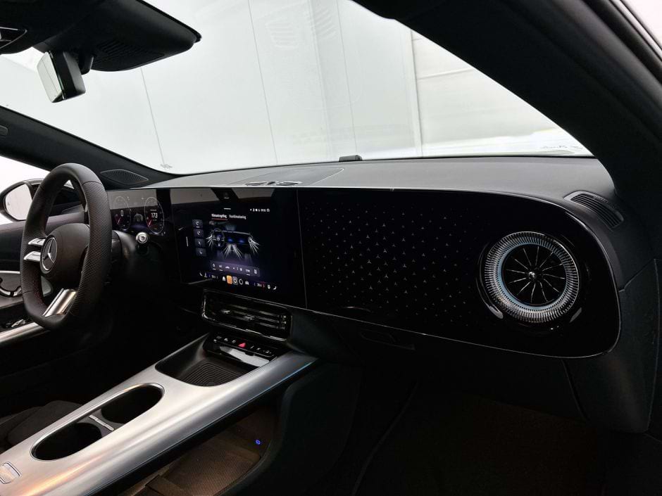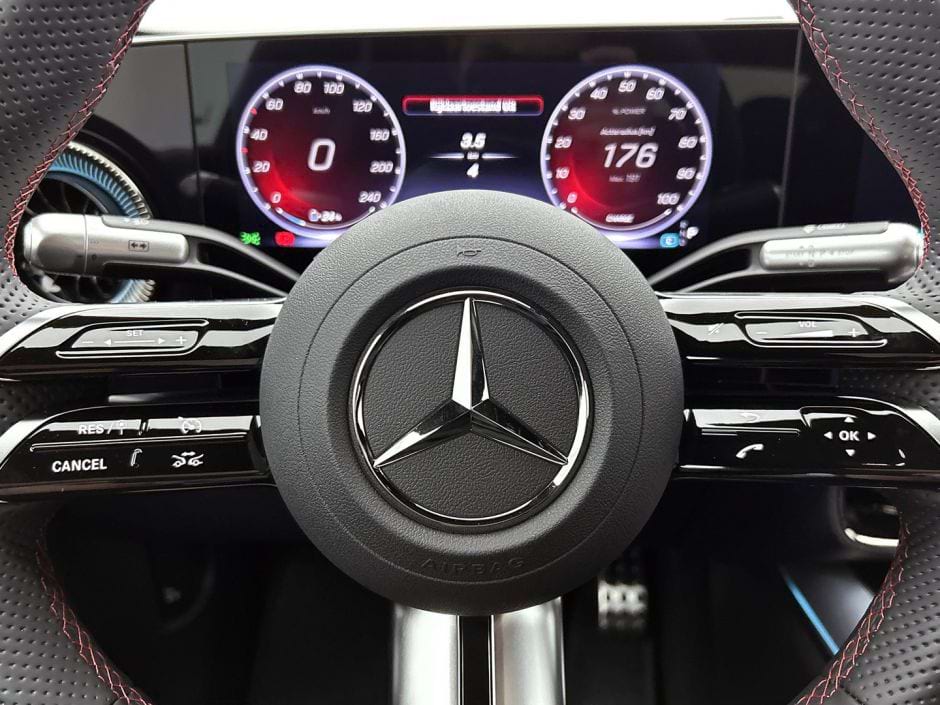 Stap je in, dan word je omringd door die typische Mercedes-ambiance, maar dan met een flinke schep extra luxe. Het glazen dak zorgt voor de nodige lichtinval, wat de cockpit een stuk ruimer doet aanvoelen. Voor de zakelijke leaserijder die veel kilometers maakt, zijn de elektrisch verstelbare sportstoelen met stoelverwarming een fijne feature. De sfeerverlichting is in talloze kleuren instelbaar, al kiezen de meesten waarschijnlijk één keer een kleur en kijken er nooit meer naar om.