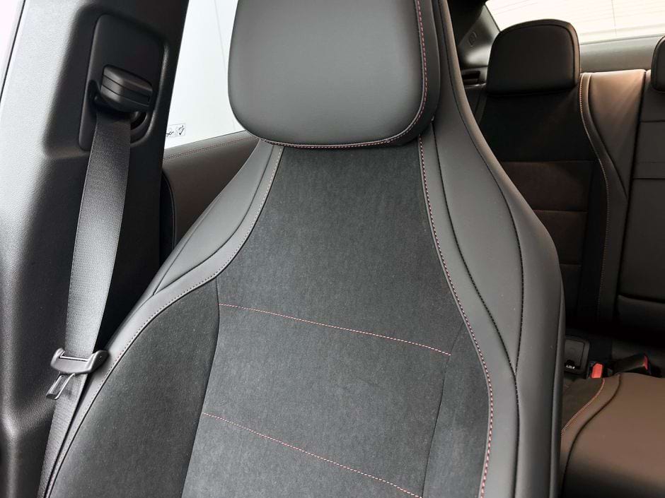 Met 272 pk en 335 Nm op de achterwielen is de CLA 250+ geen circuitmonster, maar wel bijzonder vlot: De sprint naar de 100 km/u klaart hij in 6,7 seconden, de topsnelheid is begrensd op 210 km/u. Mercedes geeft een officiële WLTP-actieradius op van maar liefst 768 kilometer. In de praktijk blijft daar gemiddeld ongeveer 550 kilometer van over. Dat is nog steeds indrukwekkend; hiermee heeft de CLA een vergelijkbare range als zijn benzinebroers.
