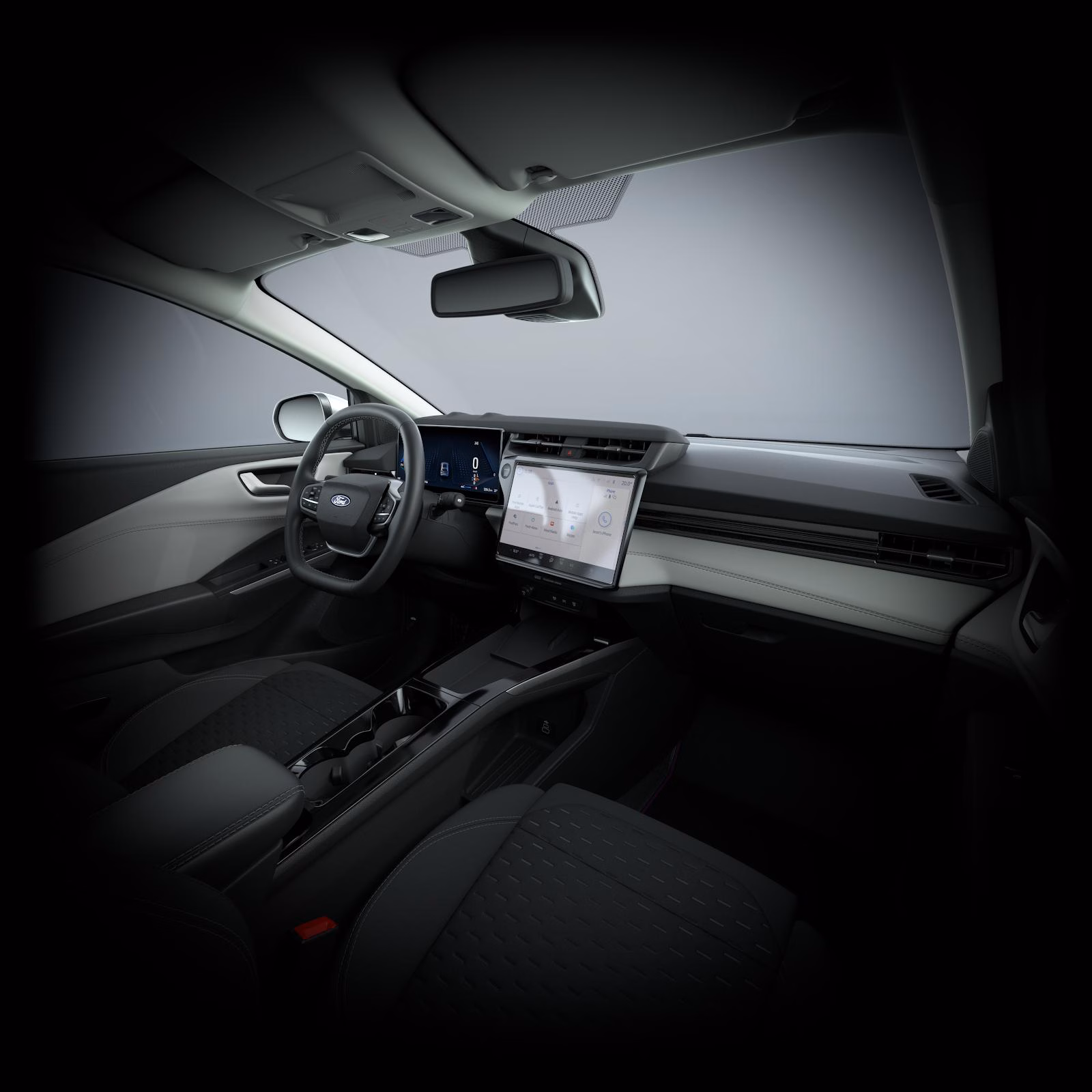 Binnenin word je verwelkomd door een 12,8 inch personaliseerbare Digital Cockpit die alle relevante rij-informatie haarscherp weergeeft. Het hart van het interieur is het 12-inch SYNC 4-multimediasysteem, dat draadloos verbinding maakt met Apple CarPlay of Android Auto. Geen geklooi met kabels dus, zeker niet omdat ook een draadloze oplader voor je telefoon aanwezig is.